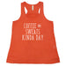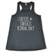 Shop our Coffee & Sweats Kind Of Day shirt.  Affordable. funny shirt for all types of fitness.